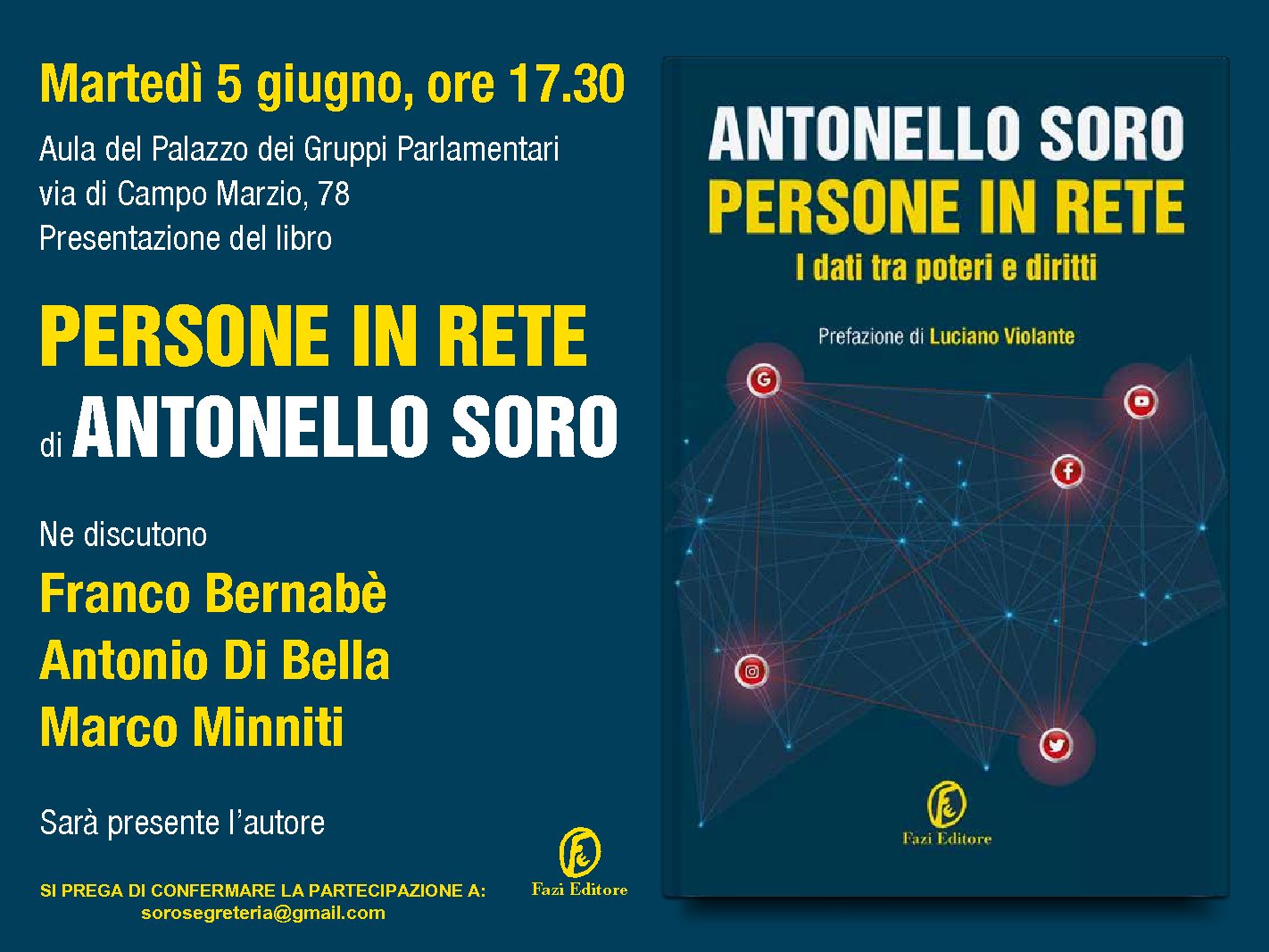 Il Garante Privacy, Antonello Soro in occasione del suo nuovo libro “Persone in Rete. I dati tra poteri e diritti”, che verrà presentato oggi... Leggi tutto