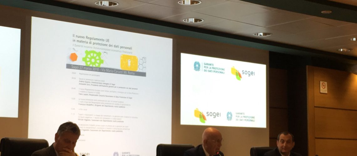 Mancano poco più di due mesi alla piena entrata in vigore del GDPR, il nuovo Regolamento Ue sulla Data Protection, e il Garante Privacy Antonello Soro nell’ambito del suo roadshow per sensibilizzare la PA su questo grosso cambiamento normativo ha incontrato oggi in Sogei l’amministrazione economica e finanziaria. Un seminario a porte chiuse (dal titolo evocativo “Il nuovo regolamento Ue in materia di protezione dei dati personali. Il Garante incontra l’Amministrazione economico finanziaria”), che ha un valore politico molto rilevante, perché Sogei si pone come cabina di regia, punto di riferimento nazionale per la nuova era della Data Protection della PA. Non a caso, nell’occasione è stato nominato il nuovo DPO (Data Protection Officer) della in house del MEF nella persona di Fabio Lazzini, Responsabile Security Governance & Data protection di Sogei.