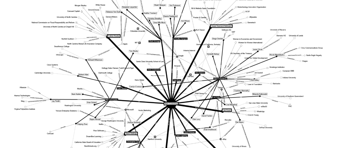Facebook, la piattaforma di social network più diffusa, è senza dubbio diventata una delle entità più influenti del nostro mondo in rete. Come già spiegato dai ricercatori dello SHARE Lab, un laboratorio di innovazione con base in Serbia, Facebook può essere considerato come un’enorme fabbrica mondiale di manodopera immateriale in cui gli utenti hanno un ruolo fondamentale: produrre il maggior numero possibile di dati personali. Tuttavia, Facebook Inc., la società che possiede questa enorme fabbrica immateriale, è (ancora) gestita da esseri umani. Quelle connessioni tra persone sia all’interno della corporation che con altre aziende, ad esempio nell’industria IT, nelle amministrazioni e con le organizzazioni della società civile, sono il tema della ricerca più recente di SHARE Lab e Tactical Tech.