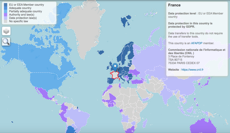 Questa mappa, realizzata dal CNIL, - il Garante Privacy francese, ti consente di vedere il livello di protezione dei dati in ogni Paese.