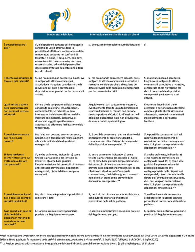 Come gestire i dati personali delle persone durante quest’estate 2020 con il Covid-19 per quanto riguarda: